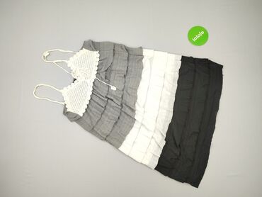 Długa sukienka damska w odcieniach szarości i bieli, ozdobiona wzorem w poziome paski. Posiada cienkie ramiączka, idealna na letnie dni lub jako element codziennej garderoby. Wykonana z mieszanki w...Stan: