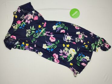 Sukienka maxi z krótkim rękawem – granatowa w kwiaty - Fason: prosta, lekko dopasowana, długość maxi - Dekolt: w kształcie łezki z delikatnym rozcięciem przy szyi - Rękawy: krótkie - Wzór: intensy...