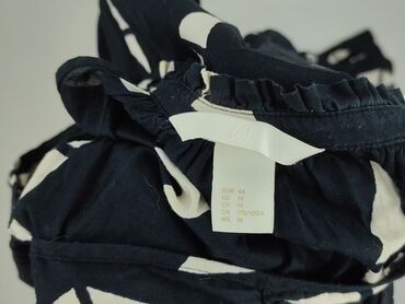 ŚwiętaDługa sukienka maxi H&M w kolorze granatowym z białym wzorem geometrycznym. Sukienka ma ramiączka i luźny, zwiewny krój, idealny na ciepłe dni. Dekolt jest lekko marszczony, a w talii znajduje się elastyczne marszczenie, które podkreśla sylwetkę i dodaje sukience lekkości. Materiał jest przyjemny w dotyku i zapewnia komfort noszenia.