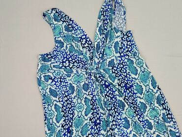 Sukienka maxi M&Co, damska - Fason: długa sukienka maxi bez rękawów - Rozmiar z metki: 14 (UK) – odpowiada ok. EU 42 - Wzór: tropikalny/roślinny w odcieniach niebieskiego na białym tle - Dekolt: o...