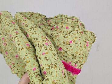 - Wzór: drobne kwiaty na jasnym, pistacjowo‑zielonym tle; ozdobne, różowe aksamitne taśmy/paski w talii i przy dole