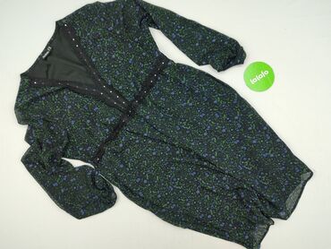 Sukienka damska BELoVED Woman - Rozmiar: EU 42 (ES 44 / IT 46) – z metki - Krój: prosty, długość midi, rękaw 3/4 - Dekolt: okrągły - Kolor: czarny z drobnym, roślinnym nadrukiem (kwiatki/gałązki w...