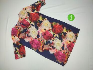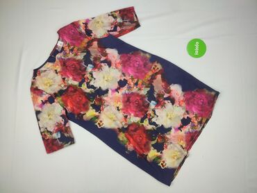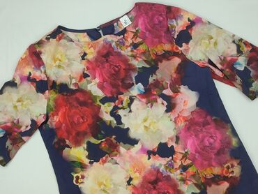 - Wzór: duże, malarskie kwiaty w odcieniach czerwieni, różu, bieli i kremu na granatowym tle