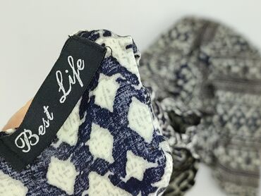 - Wzór: etniczny/geometryczny, pasy w odcieniach granatu, czerni i bieli