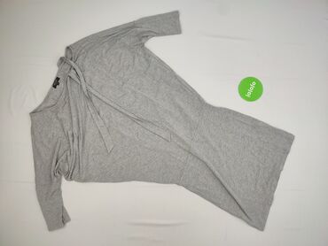Sukienka dzianinowa, grafitowa, rozmiar 38. - Krój: ołówkowy, długość za kolano. - Rękawy: 3/4. - Dekolt: okrągły z ozdobnym metalowym elementem w kształcie litery „V”. - Materiał: miękka, elastyc...
