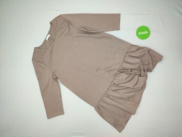 Sukienka damska Sinsay - Rozmiar: XL (z metki) - Kolor: beżowy/taupe - Fason: prosta góra z odcięciem i marszczoną, falbanową dolną częścią - Rękaw: 3/4 - Dekolt: okrągły - Długość: mini/przed kol...