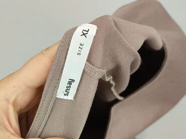 Sukienka damska Sinsay - Rozmiar: XL (metka “SIZE XL”) - Kolor: beżowy/karmelowy - Krój: prosta, do kolan - Dekolt: kwadratowy - Rękawy: krótkie, lekko bufiaste - Dodatki: pasek z materiału z meta...
