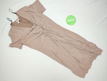 Sukienka damska midi w prążek, beżowa - Fason: dopasowany, długość midi - Rękaw: długi - Dekolt: okrągły z ozdobnym wycięciem i wiązaniem przy szyi - Materiał: elastyczna, miękka dzianina prążkowa...