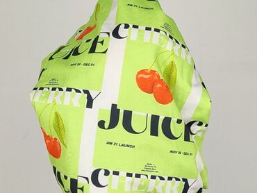 - Kolor i wzór: jasnozielone tło, graficzne napisy “JUICE”, “CHERRY”, ilustracje wiśni, detale w czerni, bieli i pomarańczu.
