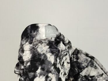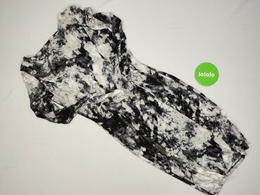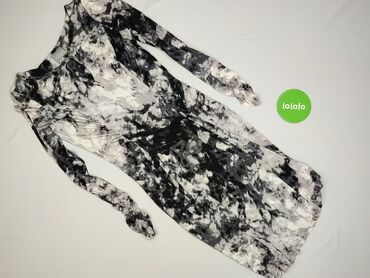 Sukienka HEADGIRL, rozmiar S/M - Fason: prosta, mini, z długim rękawem - Kolor i wzór: biało‑czarna, graficzny deseń przypominający marmur/krakelurę - Kołnierz: czarny, usztywniany, zapinany z tył...