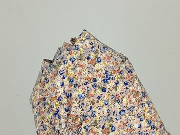 - Wzór: drobna łąka – kwiaty w odcieniach niebieskiego, różu, bieli i zieleni na pudrowo‑różowym tle