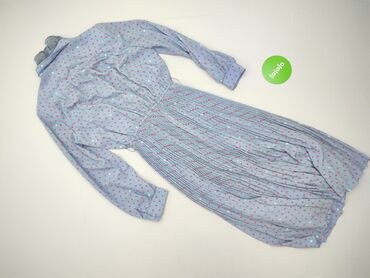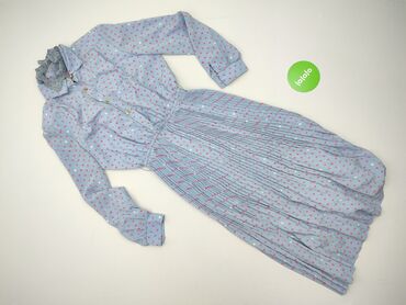 Sukienka midi w błękitno‑białą kratkę - Rozmiar: M (na metce) - Materiał: 100% poliester - Fason: midi z falbanami na spódnicy, karczek z elastycznym marszczeniem (smocking) dopasowującym się do s...