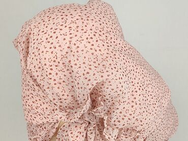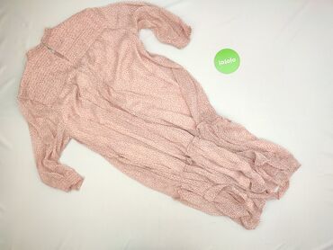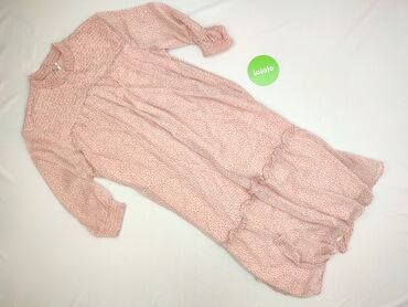 Sukienka midi w kolorze pudrowego różu z kwiatowym nadrukiem - Rozmiar: L (metka na rękawie) - Materiał: 100% poliester (informacja z metki) - Fason: rozkloszowany dół z drobnymi zakładkami, podkr...