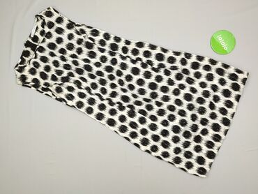 Sukienka damska marki Jennifer Taylor, rozmiar M. Model utrzymany w biało-czarnej kolorystyce z fantazyjnym wzorem, który łączy motywy kwiatowe z abstrakcyjnymi elementami. Sukienka ma szeroki deko...