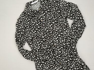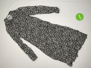 Sukienka damska RESERVED, rozmiar L - Wzór: gęsty kwiatowy print w odcieniach bieli na czarnym tle - Fason: lekko rozkloszowana, zwiewna; długość za kolano (midi); rękawy długie z delikatnym ściąga...