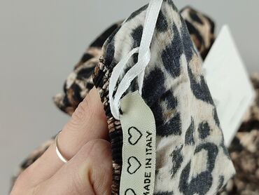 - Materiał: lekki, zwiewny, z drobną fakturą; wzór w cętki (odcienie beżu, brązu i czerni)