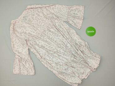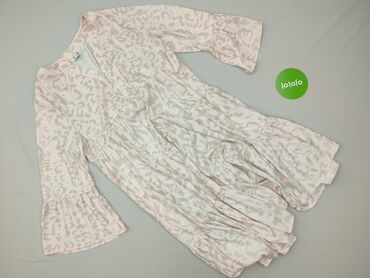 Sukienka damska z lekkiego, półprzezroczystego materiału z podszewką w części górnej. Rozmiar z metki: 40. - Fason: kopertowy/przekładany z marszczeniami po bokach, podkreślający talię - Długość:...