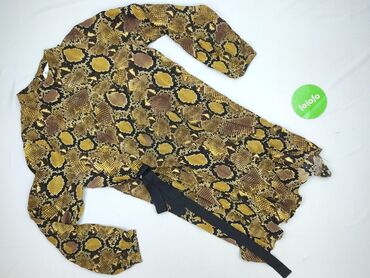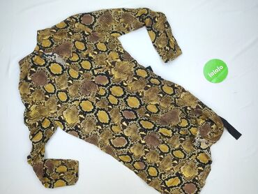 Sukienka Zara TRF (Trafaluc) - Fason: dopasowana, mini/za kolano, z długim rękawem - Dekolt: kopertowy/lekko w serek - Wzór: zwierzęcy – imitacja skóry węża w odcieniach beżu i szarości - Rozmiar ...Stan:
