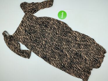 Sukienka damska z elastycznej dzianiny, o zwierzęcym, abstrakcyjnym princie w odcieniach beżu, brązu i czerni. - Krój: lekko rozkloszowany dół, dopasowana góra - Rękaw: 3/4 - Dekolt: okrągły - Dłu...