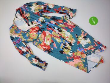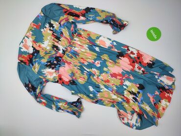 Sukienka damska z lekkiego, półprzezroczystego materiału z podszewką w części górnej. Rozmiar z metki: 40. - Fason: kopertowy/przekładany z marszczeniami po bokach, podkreślający talię - Długość:...