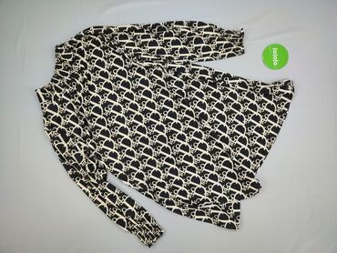 Sukienka damska z długim rękawem, biała w czarno‑szare okrągłe motywy - Krój: prosta, lekko rozszerzana ku dołowi; długość mini/za kolano (w zależności od wzrostu). - Dekolt: okrągły z małym rozci...