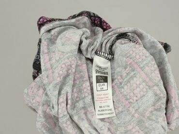 Sukienka damska o długości do kolan, w odcieniach żółci, brązu i bieli. Charakteryzuje się geometrycznym wzorem na górze i motywem dużych żółtych kwiatów w dolnej części, co nadaje jej unikalny wyg...