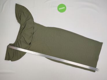Sukienka dzianinowa z długim rękawem - Kolor: oliwkowy/khaki - Materiał: elastyczna, prążkowana dzianina (widoczna struktura w drobny prążek) - Krój: taliowana z odcięciem w pasie i doszytą, lekko...Stan: