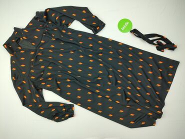 Sukienka koszulowa w geometryczny wzór - Fason: prosta, koszulowa, długość midi/przed kolano, lekko zaokrąglony dół. - Zapięcie: z przodu listwa z guzikami do połowy długości. - Rękawy: długie, mo...