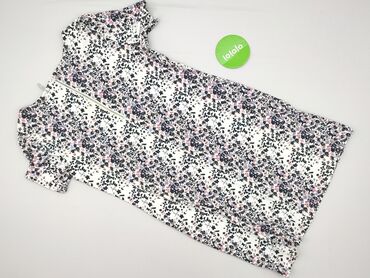 Sukienka damska w kwiaty - Krój: taliowana z odcinaną talią i lekko rozkloszowanym dołem - Rękaw: krótki - Dekolt: okrągły - Długość: sięgająca kolan (midi) - Wzór: gęsty, kolorowy motyw kwiatowy ...