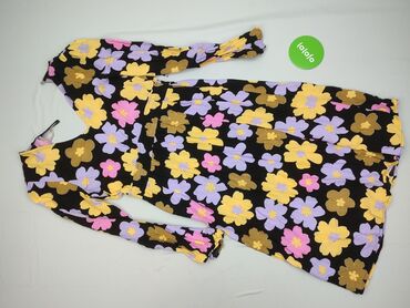 Sukienka marki PIECES, rozmiar M. - Kolor: czarny z kwiatowym nadrukiem w odcieniach bieli, żółci i błękitu - Fason: kopertowy/zakładany na linii talii, dekolt w kształcie litery V, krótkie rękawy...