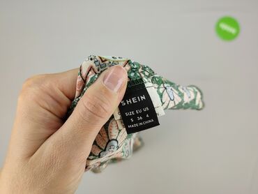 Sukienka damska SHEIN, rozmiar S (EU 36/84). - Krój: kopertowy dekolt V, odcięcie i marszczenie w talii, długość midi, krótkie rękawy. - Wzór: wielobarwny, kwiatowy print na białym tle (odcienie ...Sukienka SHEIN – rozmiar S (EU 36, US 4)
