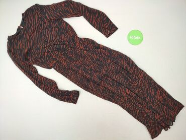 Sukienka damska Sinsay, rozmiar XS. - Długość maxi/midi (za łydkę), dołem lekko falująca - Wzór w zwierzęce pasy: ceglasty/rdzawy na czarnym tle - Góra z okrągłym dekoltem i długim rękawem; mankie...Stan:
