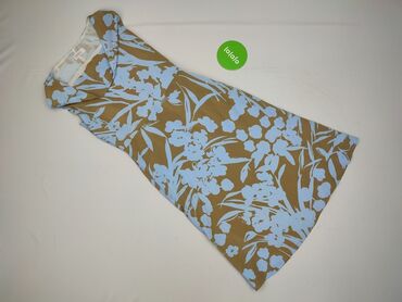 ŚwiętaSukienka midi damska marki Stefanel. Charakteryzuje się kwadratowym dekoltem i brązowo-niebieskim wzorem w kwiaty. Idealna na co dzień i na specjalne okazje.
