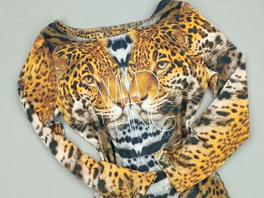 Sukienka damska w panterkę, rozm. M - Fason: dopasowany u góry, rozkloszowany dół z falbaną - Rękawki: krótkie, z efektowną falbanką - Dekolt: okrągły - Materiał: 100% poliester (metka na zdjęciu)...