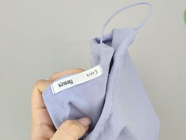 Sukienka mini na ramiączkach Sinsay - Kolor: jasny liliowy/pastelowy fiolet - Rozmiar: S (metka „Sinsay – Size S”) - Fason: prosta, dopasowana, długość mini - Dekolt: prosty - Ramiączka: cienkie s...Stan: