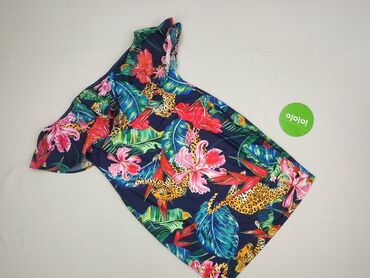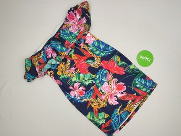 Sukienka mini w tropikalny print - Krój: krótka sukienka z rozkloszowanym dołem, elastyczna gumka w pasie podkreślająca talię. - Rękawy: efektowne, warstwowe falbany na ramionach. - Dekolt/plecy: ...