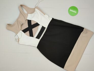 InnaSukienka mini marki Quiz w beżowo-czarno-białej kolorystyce, idealna na wieczorne wyjścia. Sukienka posiada okrągły dekolt i jest bez rękawów, co nadaje jej lekkości. Charakterystyczny design z wycięciami z tyłu i krzyżującymi się paskami dodaje jej unikalnego charakteru. Wykonana z materiału z dodatkiem elastanu, co zapewnia dopasowanie i komfort noszenia. Długość mini podkreśla nogi, a wielobarwny wzór sprawia, że jest to stylowy element garderoby.