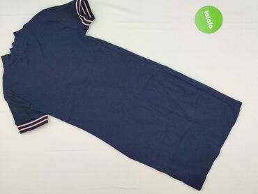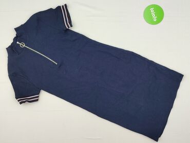 Sukienka damska Sinsay - Model: prosta, dzianinowa sukienka z krótkim rękawem - Kolor: granatowy - Detal: falbana na dole z materiału w paski (biało‑niebieskie), dodaje lekkości i kontrastu - Deko...