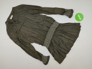 Na co dzieńSukienka mini w kolorze khaki, idealna do noszenia na co dzień. Charakteryzuje się luźnym fasonem i długimi rękawami z falbankami na mankietach. Dekolt w kształcie litery V z zapięciem na jeden guzik dodaje subtelności. Elastyczny pas z haftowanym wzorem podkreśla talię, zapewniając jednocześnie wygodę i swobodę ruchów. Dół sukienki jest rozkloszowany, co nadaje jej lekkości. Świetnie sprawdzi się na różne okazje.