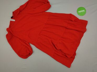 Czerwona sukienka mini H&M Divided - Fason: rozkloszowana, dopasowana w talii - Dekolt: okrągły - Rękaw: krótki - Materiał: mięsista dzianina o wyraźnej, tłoczonej fakturze (strukturalny splot) - ...