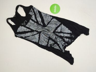 Bluzka damska z krótkim rękawem, dwukolorowa. - Krój: luźniejsza góra z marszczeniem, dół dopasowany do bioder (tunika/bluzka dłuższa). - Wzór i detale: górna część w jasny, koronkowy nadruk z moty...