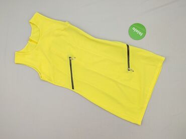 Na co dzieńŻółta sukienka mini z okrągłym dekoltem, bez rękawów. Sukienka charakteryzuje się ozdobnymi, czarnymi zamkami błyskawicznymi umieszczonymi z przodu, nadającymi jej nowoczesny wygląd. Z tyłu sukienki znajduje się długi, żółty zamek błyskawiczny ułatwiający zakładanie. Krój sukienki jest dopasowany, podkreślający sylwetkę, a jej długość sięga do połowy uda. Idealna na letnie dni lub jako element stylizacji na imprezy.