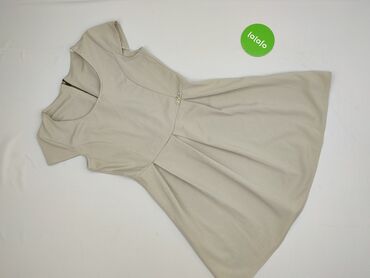 Sukienka damska bez rękawów, beżowa - Fason: rozkloszowany dół z głębokimi kontrafałdami, dopasowana góra - Dekolt: okrągły - Zapięcie: suwak z tyłu - Tkanina: 100% poliester (etykieta na zdjęciu)...