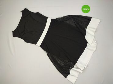 Sukienka damska bez rękawów, kolor czarny z białymi akcentami. - Fason: dopasowana góra, rozkloszowany dół. - Dekolt: okrągły. - Wstawka w talii: biała, z ozdobnymi wycięciami po bokach, optycznie...Stan: