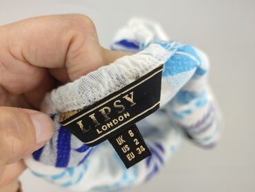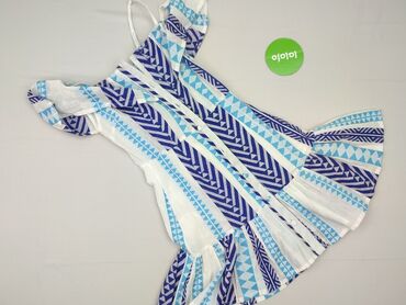 ŚwiętaBiała sukienka mini z kolekcji Lipsy London z niebieskimi geometrycznymi wzorami. Sukienka posiada falbankę na dekolcie oraz odkryte ramiona z cienkimi ramiączkami. Wykonana w 100% z bawełny, co zapewnia komfort noszenia. Idealna na ciepłe dni i letnie stylizacje.