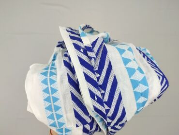 Niebieska sukienka mini z odkrytymi ramionami, charakteryzująca się luźnym fasonem i delikatnym haftem. Dekolt z gumką zapewnia wygodne dopasowanie, a ozdobna falbana dodaje lekkości. Sukienka jest...