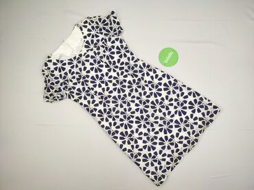 Sukienka damska w kwiaty, granatowo-biała, z denimowymi wstawkami - Krój: prosta, lekko dopasowana, długość przed kolano - Rękawy: krótkie, z jeansowymi wstawkami i podwinięciem - Dekolt: okrągły ...