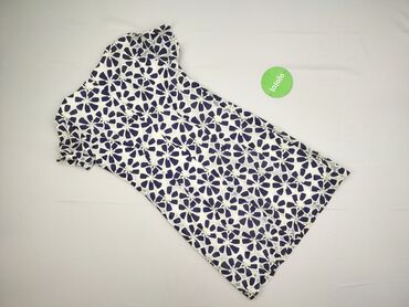 Sukienka damska bez rękawów z rozkloszowanym dołem, w efektowny granatowo‑biał y kwiatowy wzór. - Fason: dopasowana góra, odcięcie w talii, spódnica w kształcie litery A - Dekolt z przodu zaokrąg...