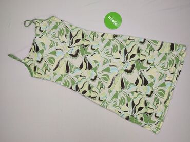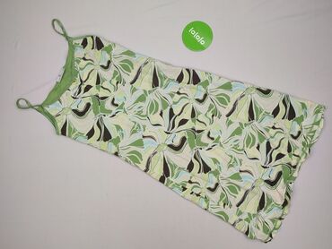 Sukienka mini damska z cienkimi ramiączkami, ozdobiona wyrazistym wzorem kwiatowym w odcieniach błękitu, zieleni i brązu. Materiał jest lekki i zwiewny, idealny na ciepłe dni. Fason sukienki jest l...Stan: