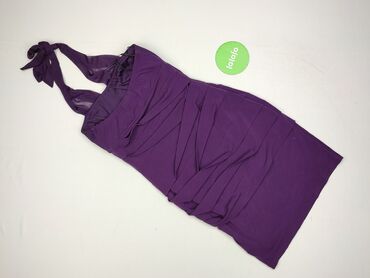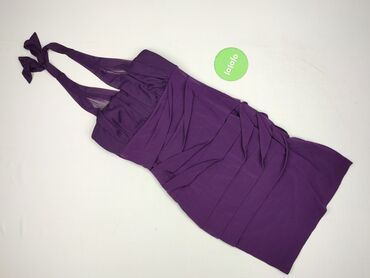 Fioletowa sukienka damska z dekoltem w kształcie litery V, idealna na wieczorne wyjścia lub specjalne okazje. Charakteryzuje się ozdobnym marszczeniem w talii, które dodaje jej elegancji. Bez rękaw...
